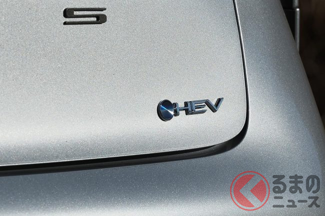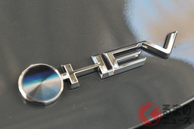 ブルーの円とは、トヨタが提唱する「BEYONE ZERO(ゼロを超えた価値)」を象徴するマークに、Hybrid Electric Vehicleの頭文字であるHEVを用いることで「電動車」を強調する意味合いがあるようです。なお、プラグインハイブリッド車は文字が「PHEV」となります。