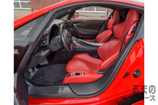 今回出品される予定のLFAは2012年製で、シリアルナンバーは075。インテリアは、オーダーメイドでドアやインストルメントパネル、センターコンソール、ステアリングホイールなどに、ステッチを施した高級感にあふれるブラックレザーを採用。座席のシートには赤いレザーを使用しています。