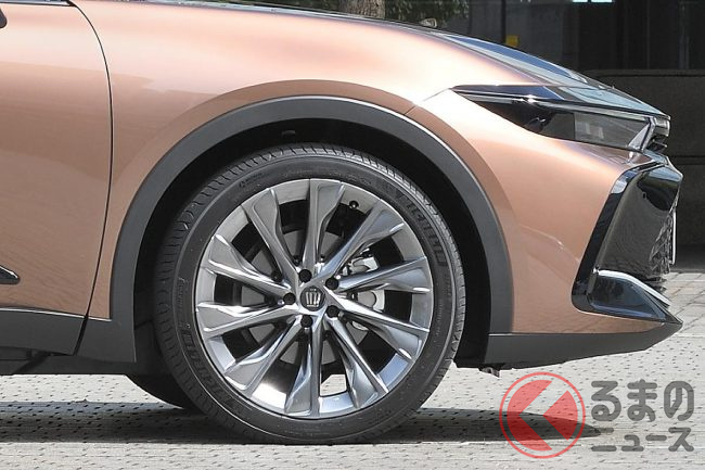 近年、大径のホイールやタイヤを純正装着している車種が増えてきました。大径のホイールやタイヤを装着すると、見た目が印象的になったり、スタイリングが良くなったりするという効果があり、例えばトヨタでは、新型「クラウン クロスオーバー」や新型「プリウス」のほか、SUVの「C-HR」など、さまざまなモデルが大径タイヤを標準採用しています。
