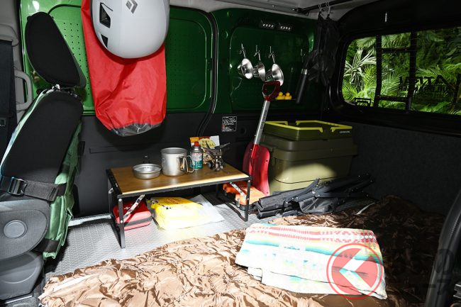 そんななか今回登場したカスタムカーは、「動く探検基地」がコンセプト。展示車はカーキとブラックを基調とし、遠くまで探検していけるようなミリタリーさが感じられるデザインとなっています。