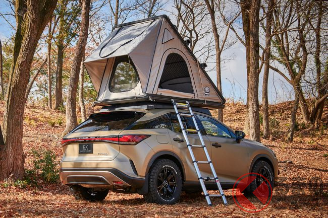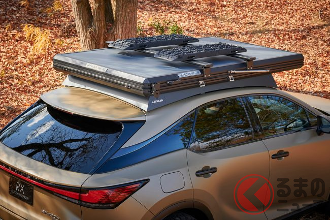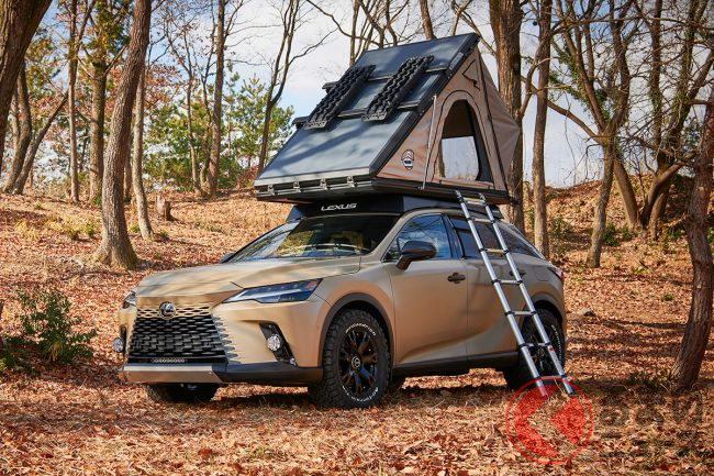 RX アウトドア コンセプトは2022年11月発売の新型SUV「RX」をベースに、アウトドアライフスタイルを快適に楽しめるという専用アイテムを装備しています。