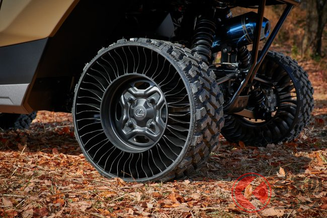 ボディカラーはRX アウトドア コンセプトと同様のレゴリスを採用するほか、通常のタイヤと異なり、空気の入っていないエアレスタイヤが装備されています。