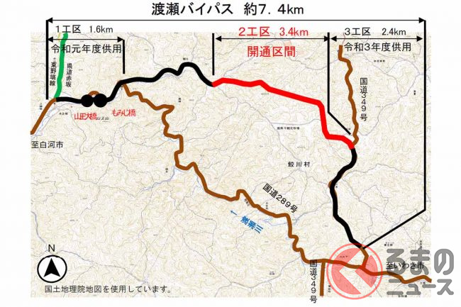 福島県の中通りと浜通りを結ぶ国道289号で、渡瀬バイパスが2023年3月4日14時に全線開通します。