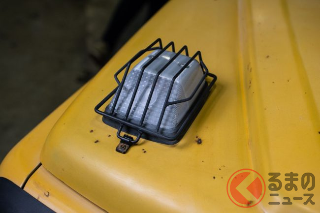フロントでは、樹脂製のグリルを含むフロントマスクや角目フォグを装着したタフな印象のバンパーが装着されるほか、ボンネットカバーが取り付けられフロントフェイスの印象が一変しています。
