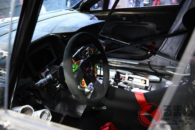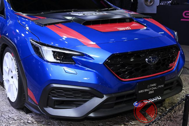 東京オートサロン2023で展示された新型ラリーカー「SUBARU RALLY CHALLENGE 2023」は、現行WRX S4の北米仕様(MT車)をベースに軽量化を図ったモデル。内装は非公開だったものの、トランスミッションや2.4リッター直噴ターボエンジン(FA24型)をラリー用にチューニングしているといい、2023年シーズン途中での投入を予定しています。