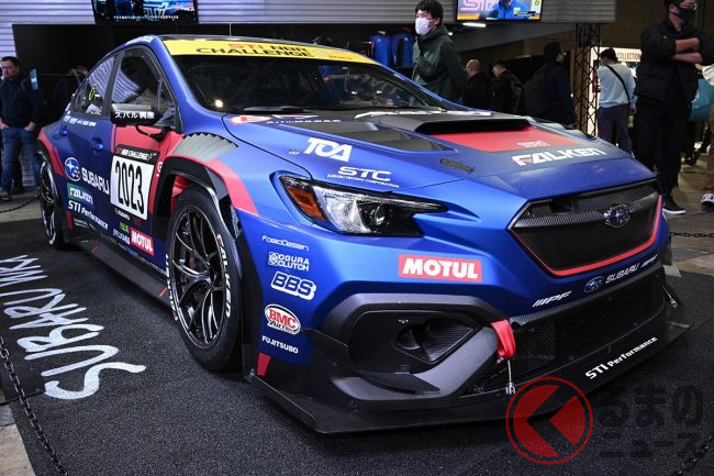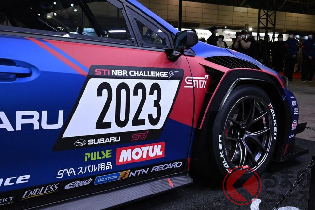 同日から開催された東京オートサロン2023のスバルブースには参戦車両が展示されましたが、なかでも注目されるのは2021年にフルモデルチェンジした新型「WRX S4」で出場する全日本ラリー2023とニュルブルクリンク24時間耐久レースではないでしょうか。