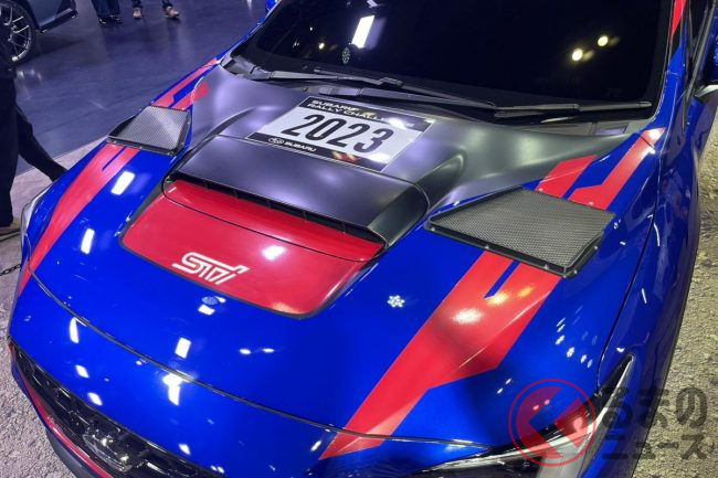 両車ともに、「WRブルー」のボディカラーにSTIを象徴する「チェリーレッド」のアクセントがところどころに施されたカラーリングが特徴的。東京オートサロンの会場でも多くの来場者から注目を集めていました。