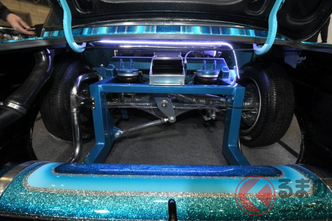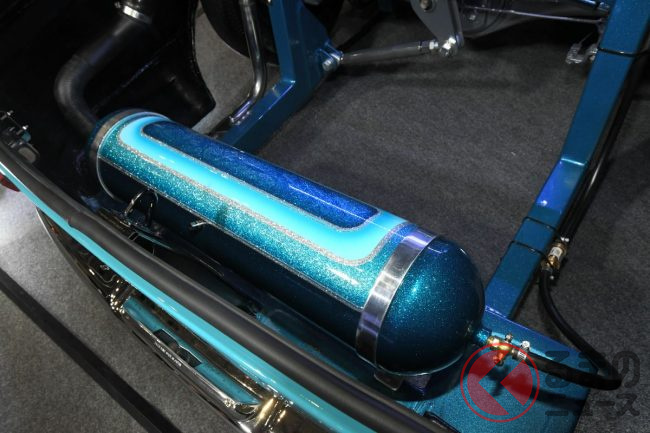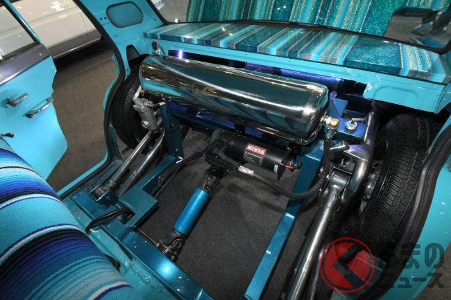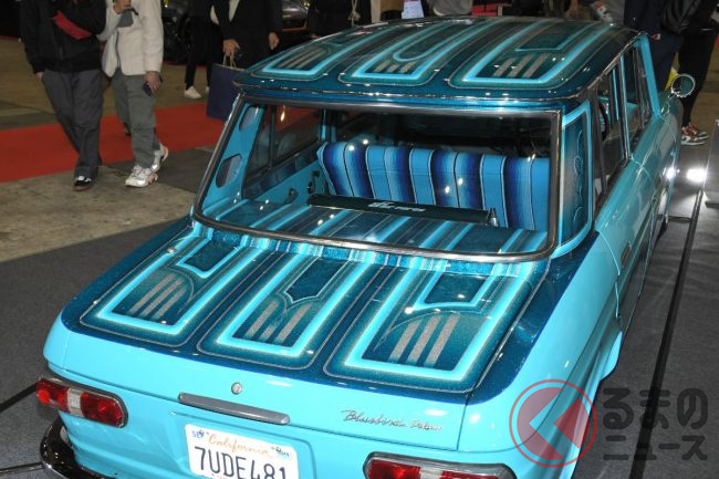 今回お披露目された411ブルーバードは、ルーフやボディの一部に古いアメ車のカスタム「ローライダー」で定番のラメ塗装となるソウルペイント(カスタムペイント)が施されています。