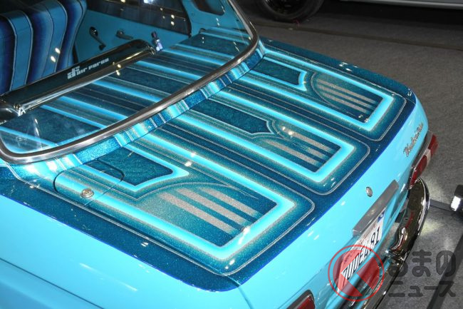 超ド派手な日産「ブルーバード」が50数年ぶりに復活! 青ラメ塗装&エアサスに反響多い… 「人生で1番頑張った」レストアカスタムとは