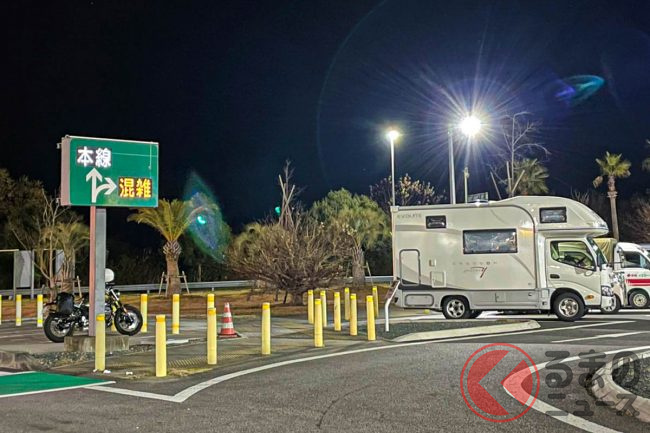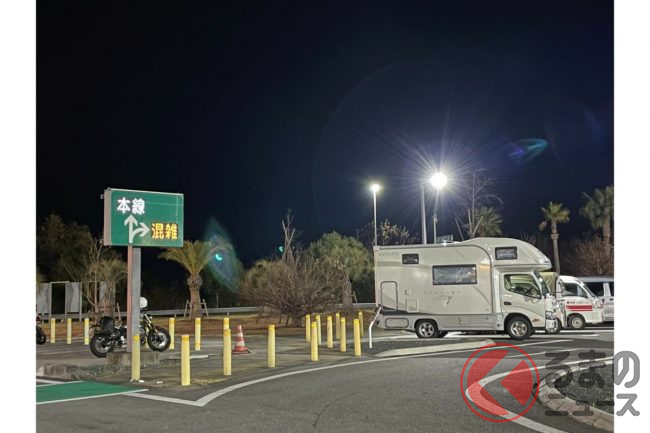 また、年末・年始など長期連休中のPA・SAでは、深夜にも関わらず駐車場は大混雑で、ポップアップルーフテントを展開したクルマやキャンピングカーが何台も停車していたのを筆者(鈴木伊玖馬)も確認しています。