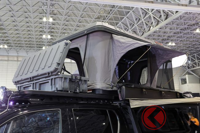 ボックスだけでなく、クーラーボックスやトローリーも用意。さらには同じような見た目を持った、ルーフテントも用意されているので、オーバーランダーカスタムをする時に、トータルコーディネイトが可能です。