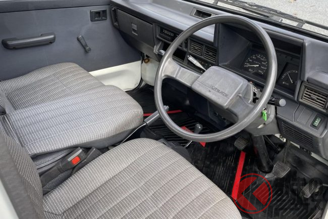 今回、出品している「ライトエーストラック」は1990年製造の3代目モデルです。パワートレインには、1.8リッターの4気筒エンジンと5速マニュアルトランスミッションを搭載。駆動方式は4WDで、最大79馬力、最大トルク約14.2kgf-mを出力します。