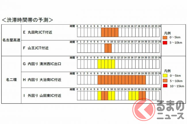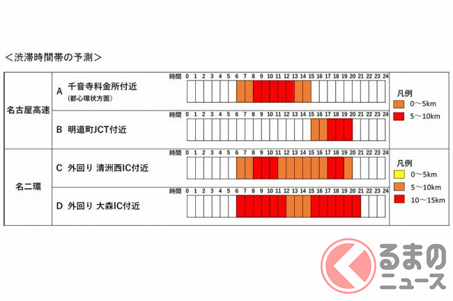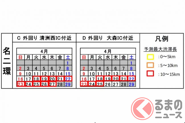 工事期間中は通行止めなどに伴い、名二環外回りの大森IC付近で最大11kmなどの渋滞が予測されています。