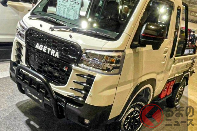 そんななかカースタイルからは、ダイハツの軽トラック「ハイゼットトラックジャンボ」をトヨタ「ランドクルーザー」GRスポーツを思わせるタフな印象に変身させた「AGETRA CRUISER(以下アゲトラクルーザー)」を展示しました。