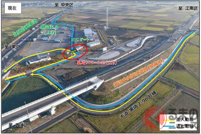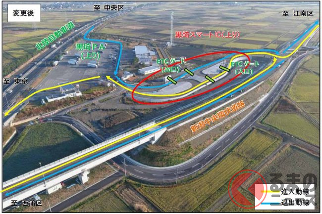 新潟中央環状道路の開通に合わせて、3月25日から北陸道の黒埼スマートICは運用形態が変わります。