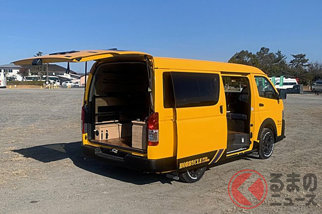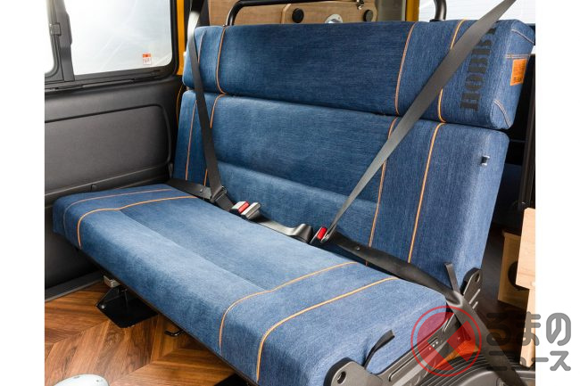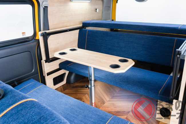 「Gパン内装」で車中泊!? 「オシャベッド」装備の新型キャンピングカー登場! 「広島産デニム」採用でタフ感炸裂の新モデルお披露目へ