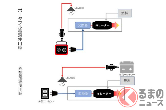 室内の断熱など、キャンピングカーとしての設計はレクビィの他モデルと同等のカスタマイズが施されているほか、電装系をシンプルにすることで、ポータブルバッテリーで電気機器やFFヒーターを使用することが可能だとしています。