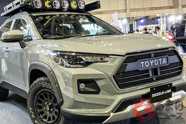 なかでもEXIZZLE-LINE(以下エクシズルライン)は、トヨタ「カローラクロス」に、トヨタ「RAV4」の雰囲気をもたせた「RAV CROSS(ラブクロス)」を出展していました。