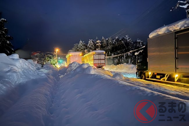 ![豪雪にともなう通行止めや集中除雪作業のため、広範囲な迂回指示にともなう交通集中が起こるなか、車両の立ち往生がきっかけの大規模な車両滞留もしばしば発生しています[画像はイメージです]](https://kuruma-news.jp/wp-content/uploads/2023/01/20230124_snow_drive_000.jpg?v=1674536397)