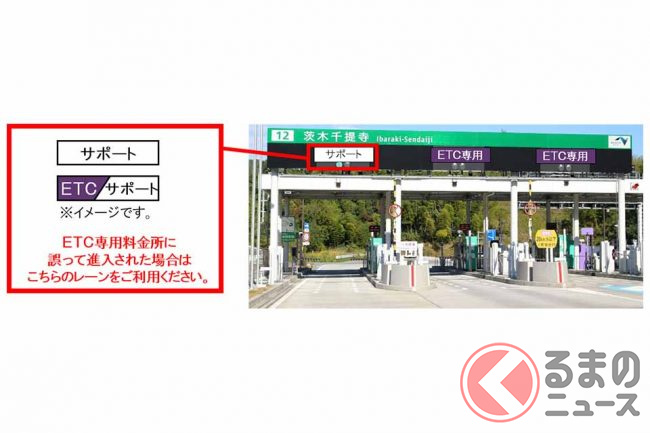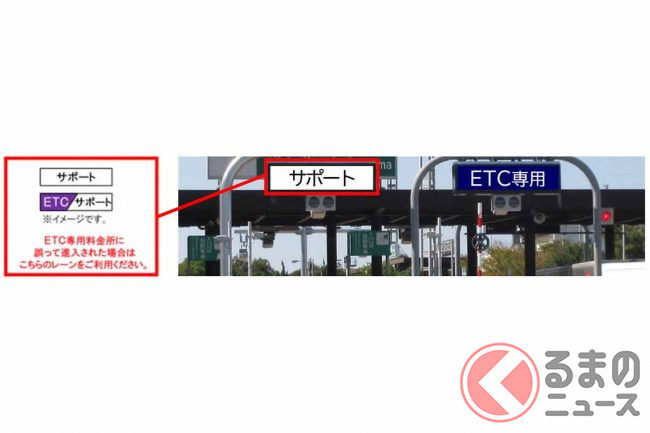 なお、ETCが使えない状態でETC専用料金所に進入した際は、「サポート」「ETC/サポート」と表示されたレーンで、係員の指示に従うことになります。