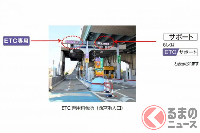 なお、ETC専用料金所は、車載器未搭載やカード未挿入などETCが使えないクルマは利用できません。誤って進入した場合は、「サポート」や「ETC/サポート」と表示されたレーンに入り、一旦停止して係員などの指示に従うことになります。