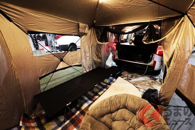 今後の車中泊は「外に」出る? 流行る!? リアゲート装着「バックドア拡張型テント」が注目されるワケ