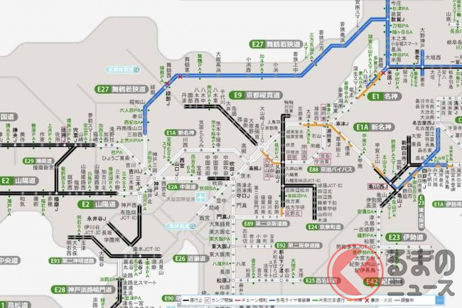 近畿地方では、第二京阪や京都縦貫道、さらに新名神・名神・京奈和道・阪和道・紀勢道などでも一部区間で不通が続いています。