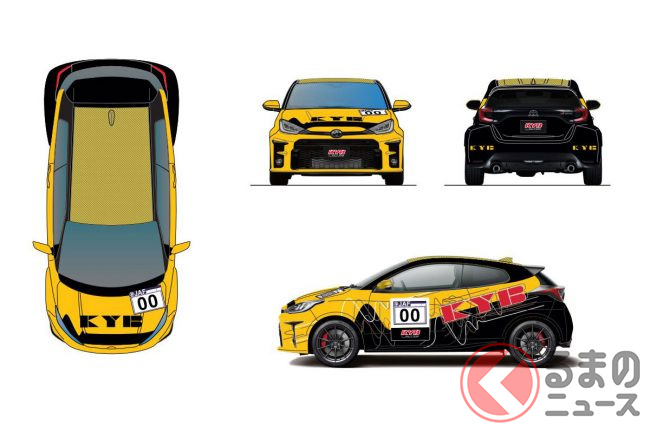 「KAYABA Rally Team」の車両はトヨタ「GRヤリス」で、デザインは「原点回帰をコンセプトに社内公募したものを採用した」とのことです。