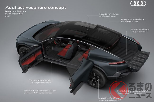 ピックアップに変身するクーペSUV! 美しすぎるスタディモデル「アクティブスフィア」をアウディが公開