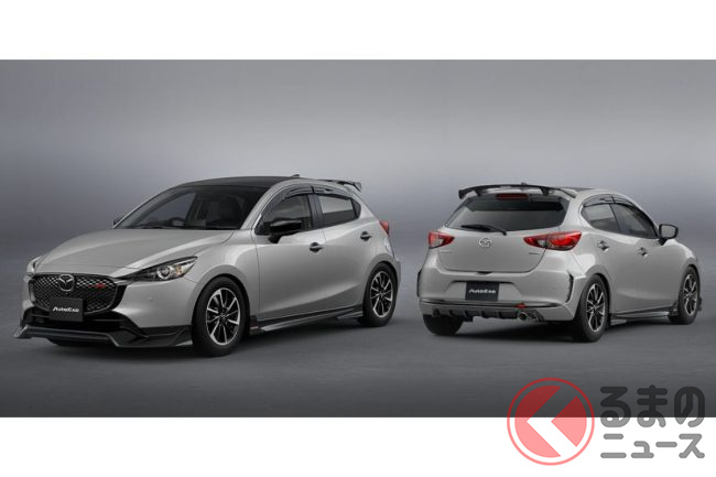 めちゃ速そう! ” MT設定”アリの新型「マツダ2」“ド迫力エアロ仕様”先行公開! ディーラーでも買える「DJ-07」とは
