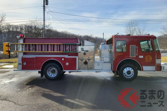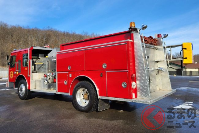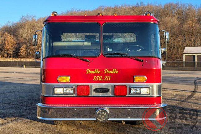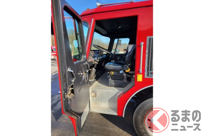 スズキ「アルト」価格で“巨大”「消防車」を落札! レトロ顔&ウッド内装が意外とオシャレ! E-One「サイクロンポンパー」米で出品