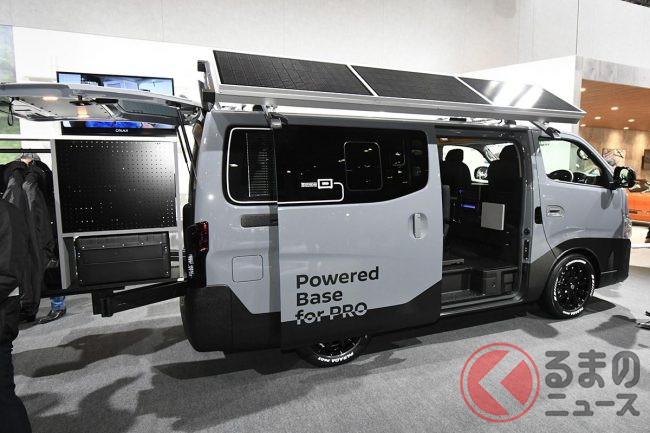 日産は東京オートサロン2023(2023年1月13日から15日開催)で、商用バン「キャラバン」のコンセプトカーとして「Powered Base for PRO(パワードベースフォープロ)」を参考出品しました。