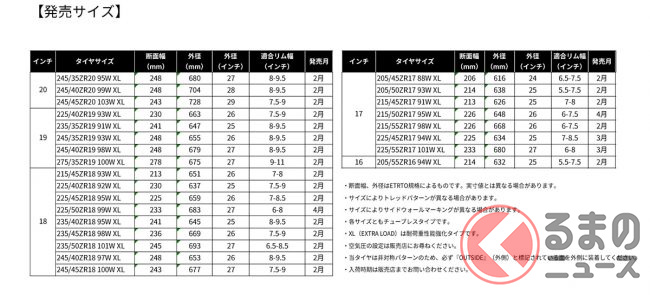 サイズは16インチから20インチまでの計25サイズで、そのうち5つは3月あるいは4月の発売になります。日本ミシュランタイヤは「日常使いからスポーティなドライビングシーンまで、ユーザーに安全で充実した走行体験を提供します」としています。
