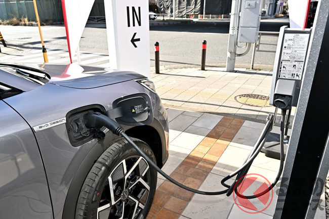 店舗には50kW級の急速充電器と200Vの普通充電器を設置する予定で、取材時は東名横浜の店舗でも普通充電器でATTO 3が充電されている様子が見られました。