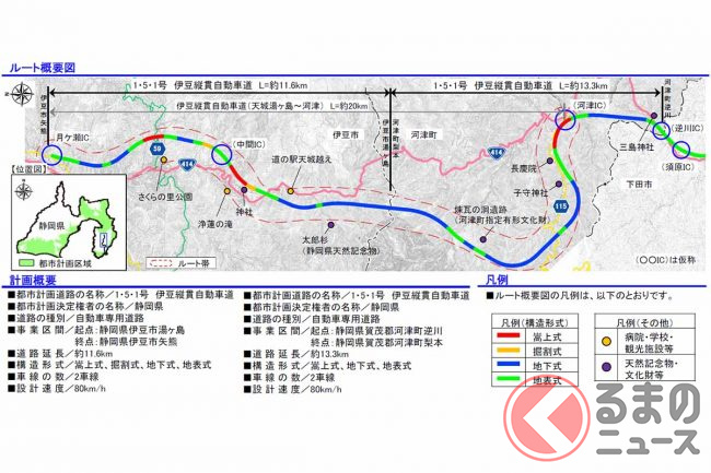 「高速天城越え」ついに計画決定! 迂回とトンネル9本で河津・下田へ 伊豆縦貫道“最難関区間”のルートは
