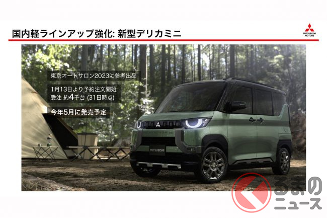 三菱は2023年2月2日に発表した「2022年度第3四半期決算」において、1月13日より予約受付を開始した5月発売予定の新型軽自動車「デリカミニ」の受注が、正式発表を前に好調な立ち上がりであることを明らかにしました。
