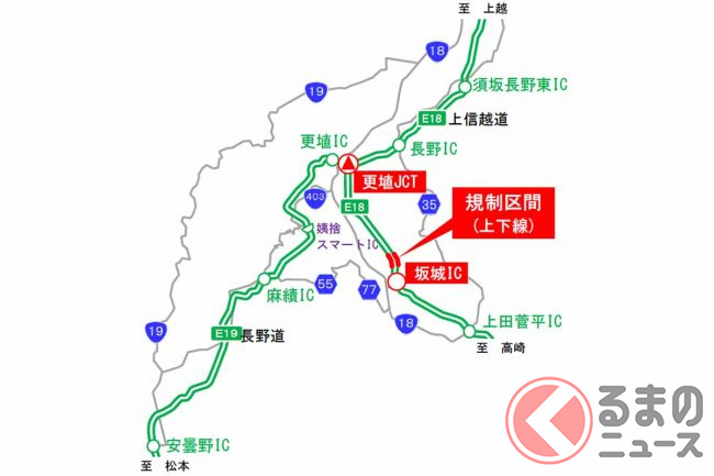 期間は2月28日から4月25日まで。区間は坂城IC(長野県坂城町)から更埴JCT(同・千曲市)までの上下線です。