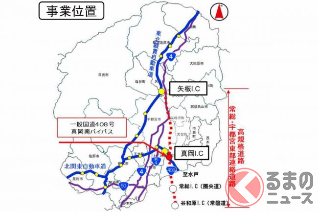 北関東道接続の国道408号「真岡南バイパス」一部が4車線化! 南北100kmを結ぶ高規格道路への第一歩!