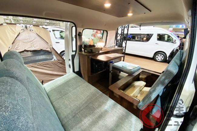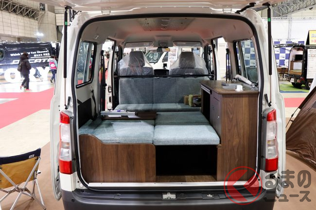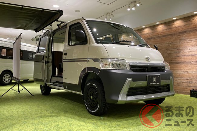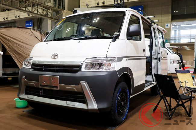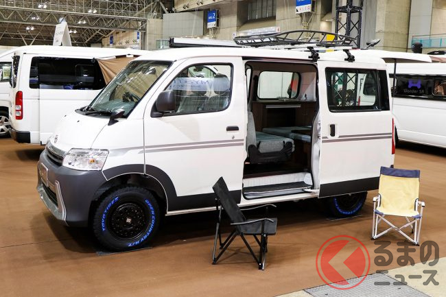 新コンパクト「キャンピングカー」公開! 「タウンエース」ベースの小型ボディで車中泊初心者にも最適!? 双日「リベロ」の特徴とは