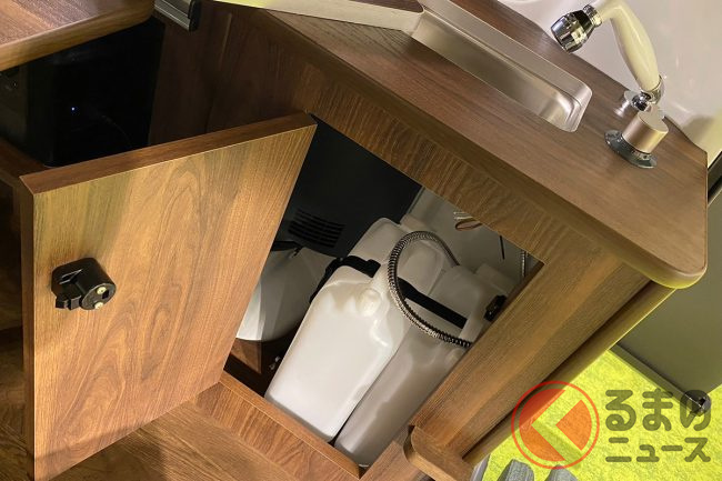 ポータブル電源やカセットコンロも搭載することで、コンパクトながら通常のキャンピングカーとして十分に使える設備を搭載。