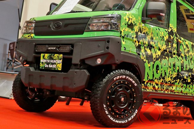 ゴツッ! ダイハツの「軽バンSUV」誕生!? リフトアップ&タフバンパーで「どこでもイケそう!」 最強“車中泊仕様”のノースハンターがスゴイ