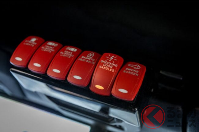 ミリタリーパッケージには、防弾ガラス・ボディパネルなどの「装甲」や、後続車をふり切るため白い煙を放出する「煙幕装置」、夜でも周辺状況が明確に確認できる「サーマルナイトビジョン」、核爆発などの際に発生する電磁パルスでもクルマが破壊されないようにする「電磁パルス保護」、ドアなどに許可なく触れようとする人に電流を流す「磁気デッドボルト」、強烈な明かりで目くらましをする「ブラインドライト」が含まれるほか、乗員用の人数分用意された「防弾チョッキ」や「ガスマスク」などがクルマに搭載され、いつ銃撃戦に巻き込まれても耐えられそうな重装備の数々が用意されています。