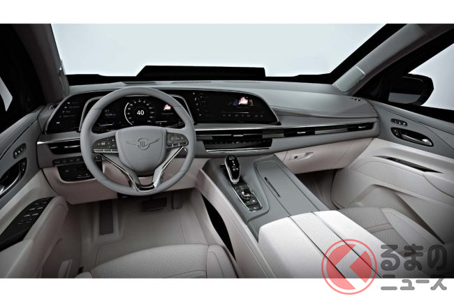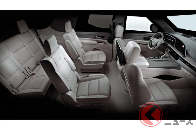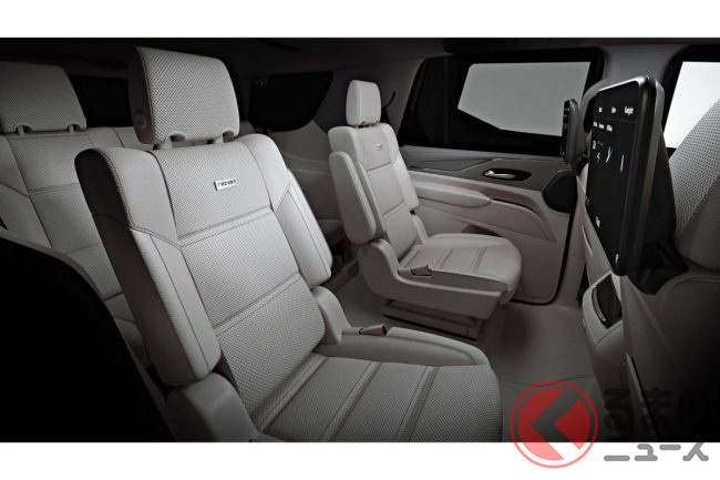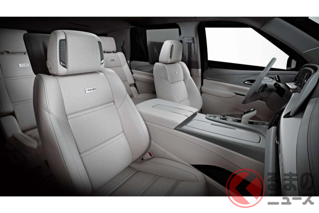 また、インテリアはエスカレードそのままの豪華な内装で、湾曲したOLEDディスプレイが特徴的です。後席を2席化した豪華なエグゼクティブシート仕様もオプションで選択可能です。