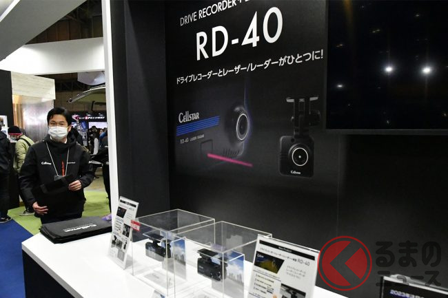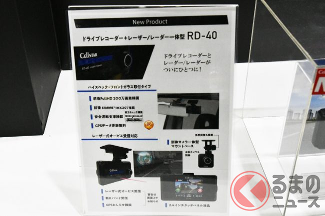 自動車関連電子機器を手掛けるセルスター工業(神奈川県大和市)は、2023年の新製品として、ドライブレコーダーとレーザー/レーダー探知機の一体型モデル「RD-40」を、「東京オートサロン2023」の同社ブースに出品しました。