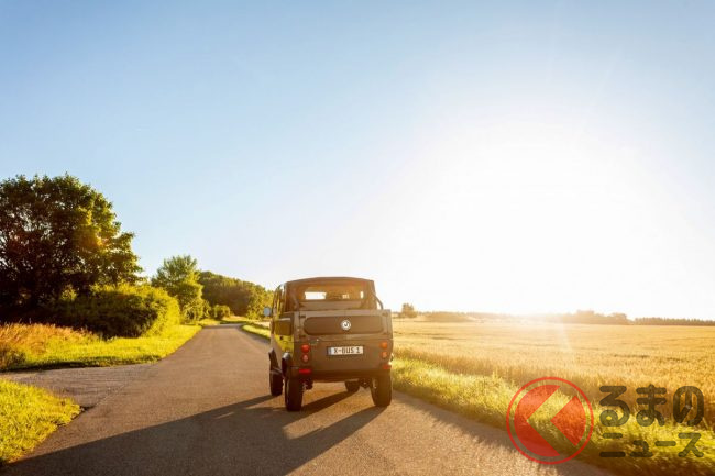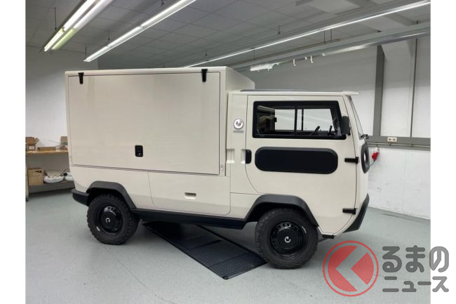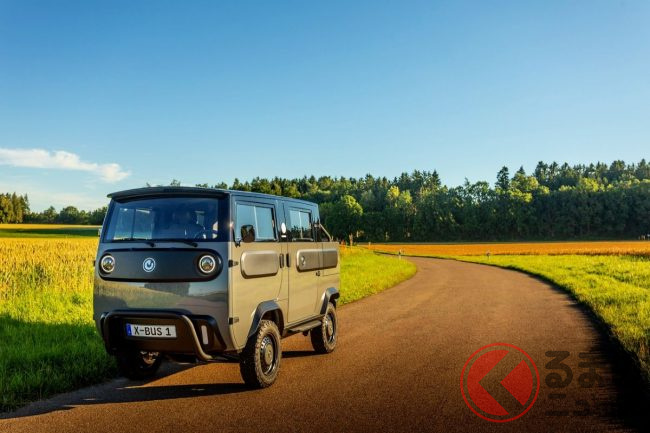 「ゴツ軽トラ」っぽい!? レトロ顔の新型「エックスバス」は全車4WD&キャンプ仕様もアリ!? 丸目がカワイイ“ドイツの軽トラ”ショールームで販売へ