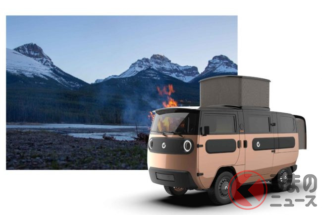 何より特徴的なのが、トラックでいう荷台部分の「モジュール」を選択して、車両をさまざまなスタイルに変更できるという点。公式サイトでは、トラックやバスなどのタイプに加え、荷台部分にテレビやシンク、冷蔵庫などを備えた「キャンピングカー」バージョンなども展開しています。