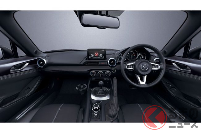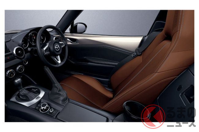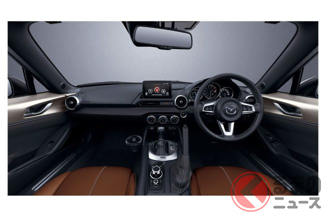 インテリアでも、ロードスターの雰囲気は残っていますが、各所にウッドパネルを採用するほか、パーフォレーテッドレザーをシートや内装材に使用し高級感を演出しています。