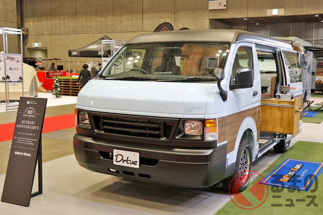 ダイレクトカーズは「ジャパンキャンピングカーショー2023」で新型モデル「RETREAT ANNIVERSARY II」を初公開しました。ウッド内装と、アメリカンなレトロ外装の組み合わせが魅力の新型キャンピングカーです。
