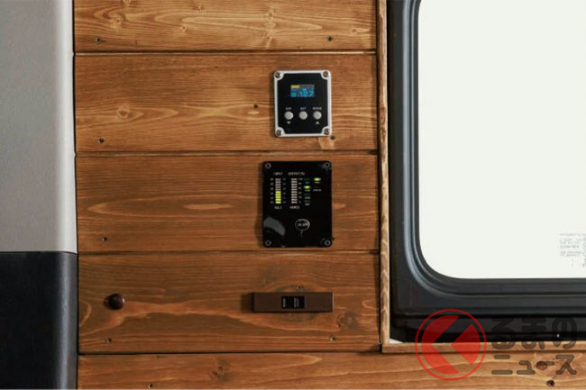 さらに、車載バッテリー(DC12V)で稼働するDCクーラーや冷蔵庫、200Aリチウムイオンバッテリーと走行充電機能、1500Vインバーター、外部充電機能などの快適装備を揃えます。