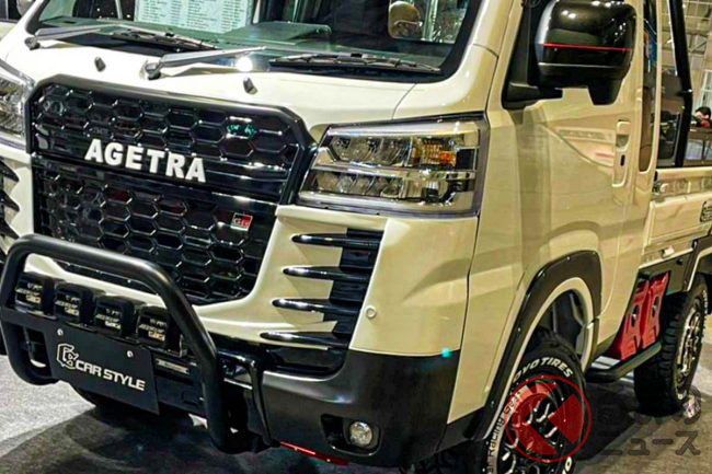 2023年1月13日から1月15日まで、幕張メッセで開催された「東京オートサロン2023」で、カースタイルはダイハツの軽トラック「ハイゼットトラックジャンボ」をトヨタ「ランドクルーザー GRスポーツ」を思わせるタフな印象に変身させた「AGETRA CRUISER(以下アゲトラクルーザー)」を展示しました。